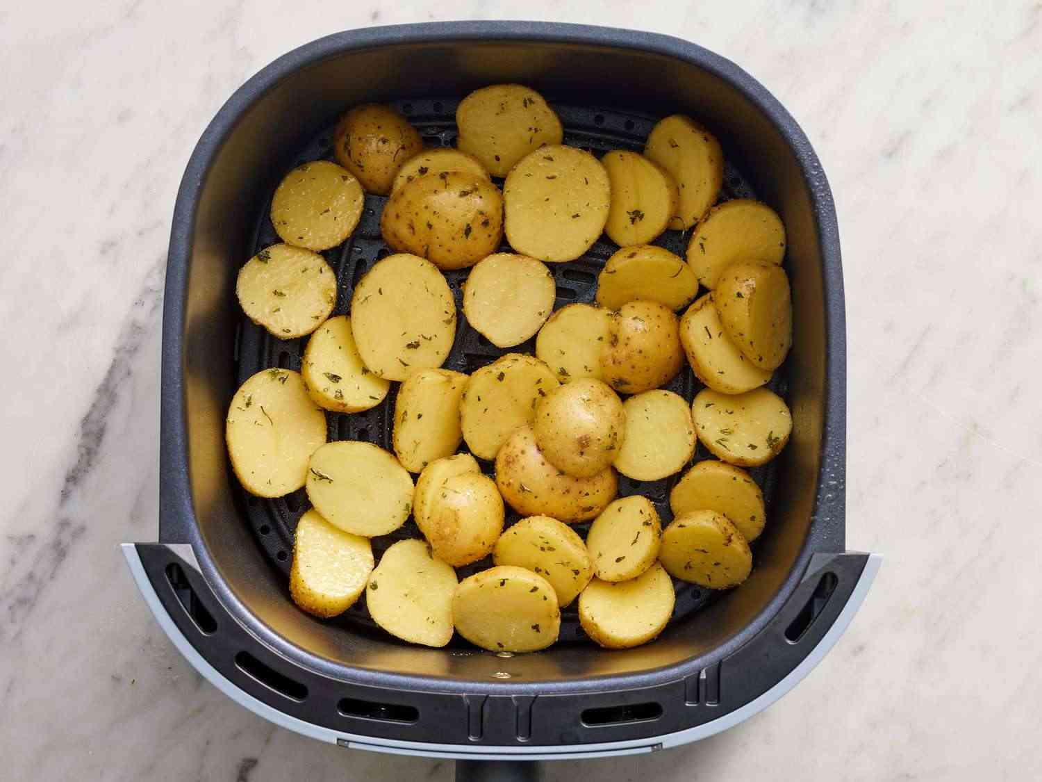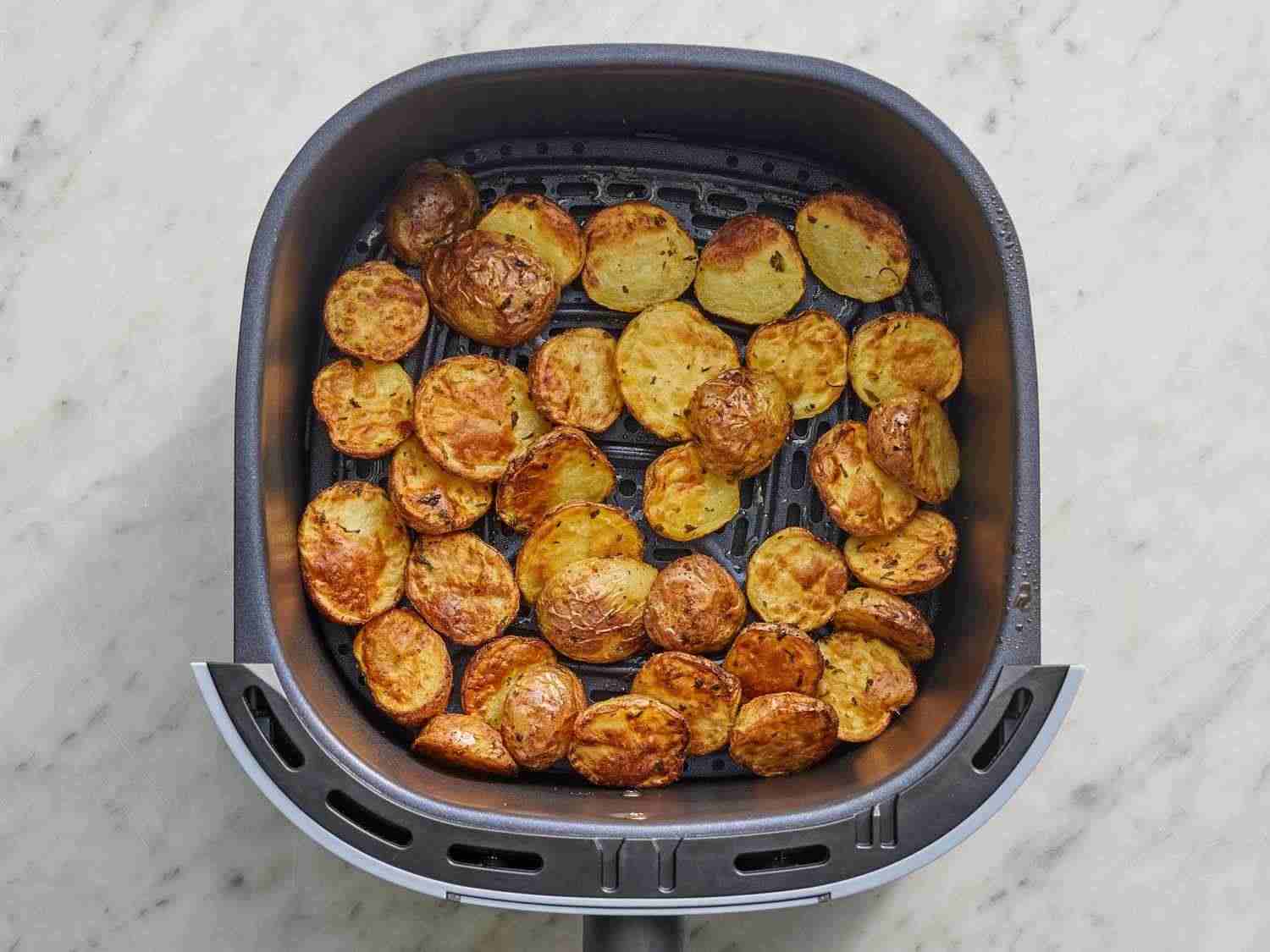 Place the basket into the preheated air fryer and cook, tossing occasionally, until golden brown, 20 to 25 minutes. Dotdash Meredith Food Studios